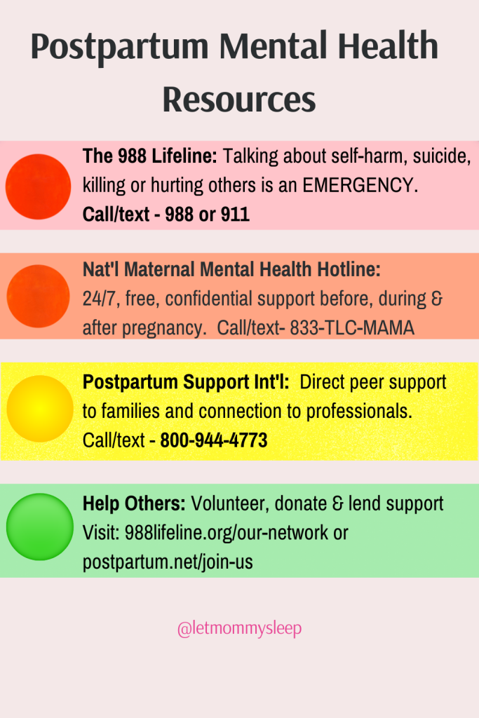 • Family, Nannies & Caregivers – Building on the tips above, share these resources with those who can look out for you and your partner. In fact, many times when we’re in distress, others notice that we’re acting differently before we do.